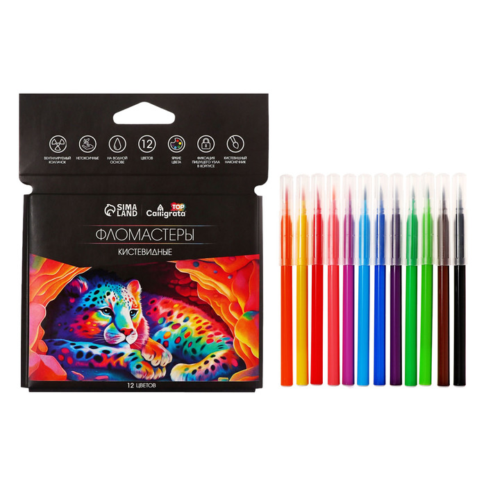 Фломастеры 12 цветов TOP Calligrata, кистевидный наконечник, в картонном пенале