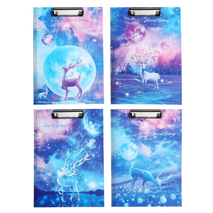 Планшет с прижимом формат А4 картон "Космос", МИКС