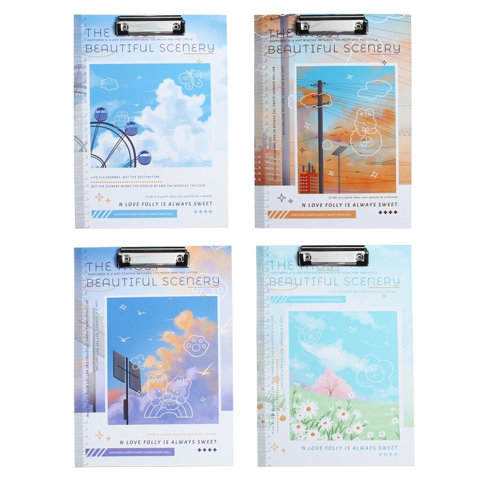 Планшет с прижимом формат А4 картон "Природа", МИКС