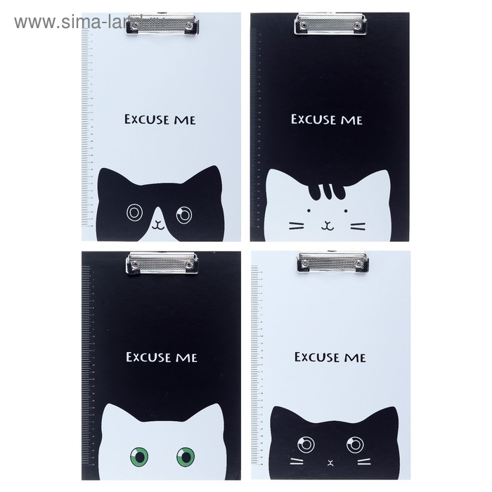 Планшет с прижимом "Кот" А4, картон, МИКС
