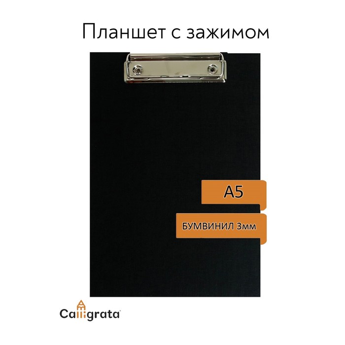 Планшет с зажимом А5, 2 мм, Calligrata, картон/бумвинил, чёрный (клипборд)