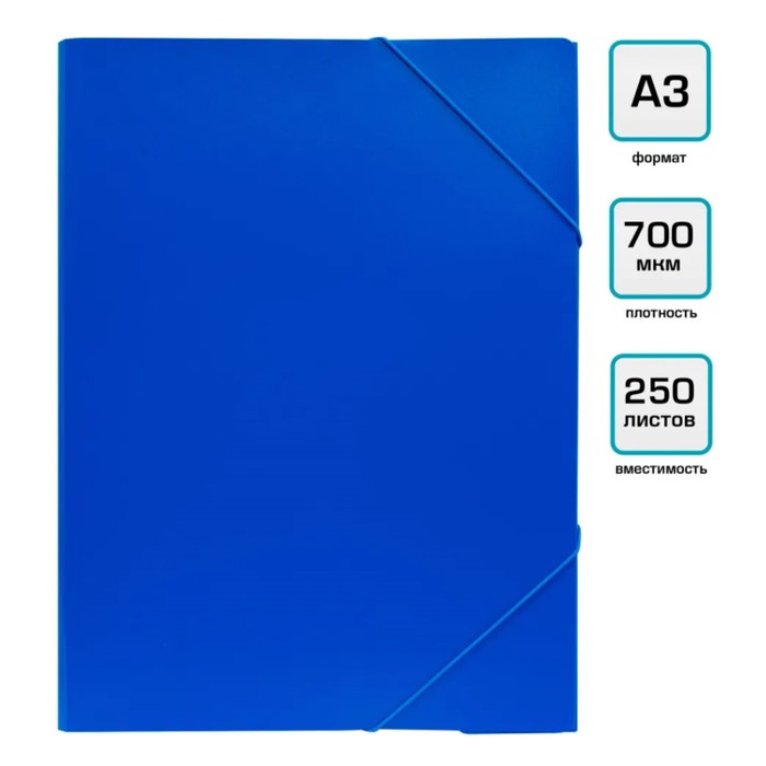 Папка на резинке А3, Calligrata, 700 мкм, до 300 листов, тиснение "песок", синяя