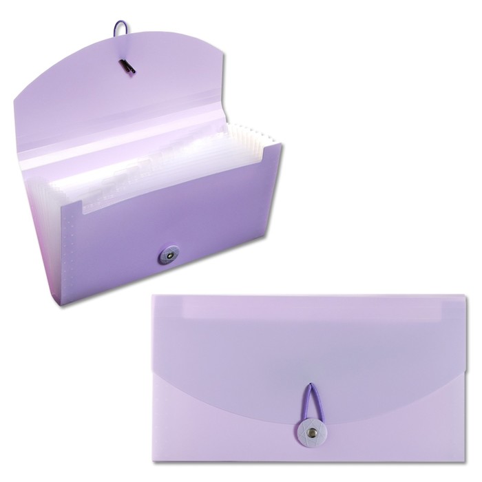 Папка на резинке А65, 12 отделений, фиолетовая, пастель