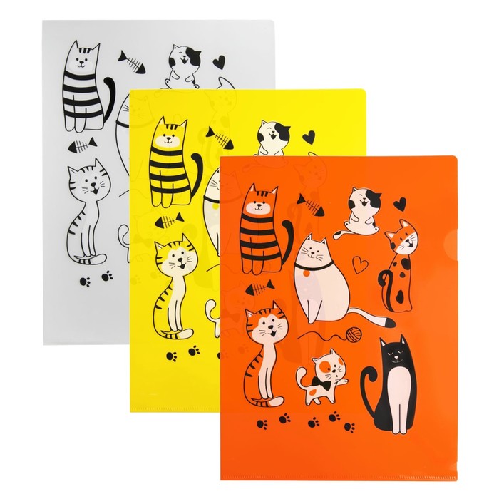 Папка-уголок А4, 180 мкм, Calligrata "Котики", полупрозрачная, с принтом, микс