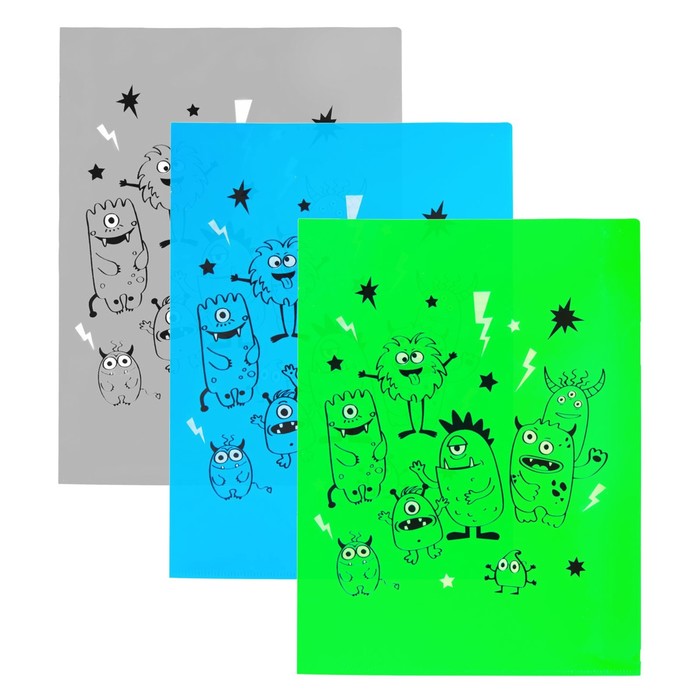 Папка-уголок А4, 180 мкм, Calligrata "Монстрики", полупрозрачная, с принтом. микс