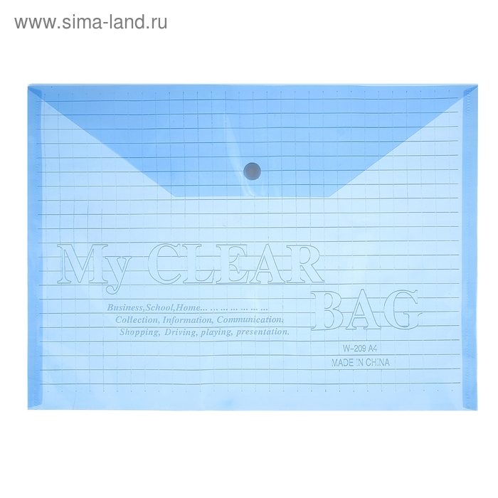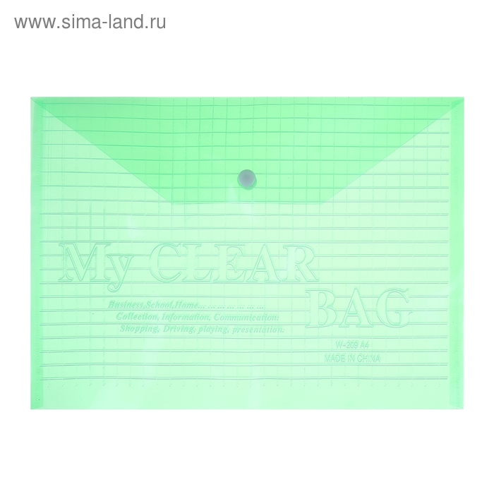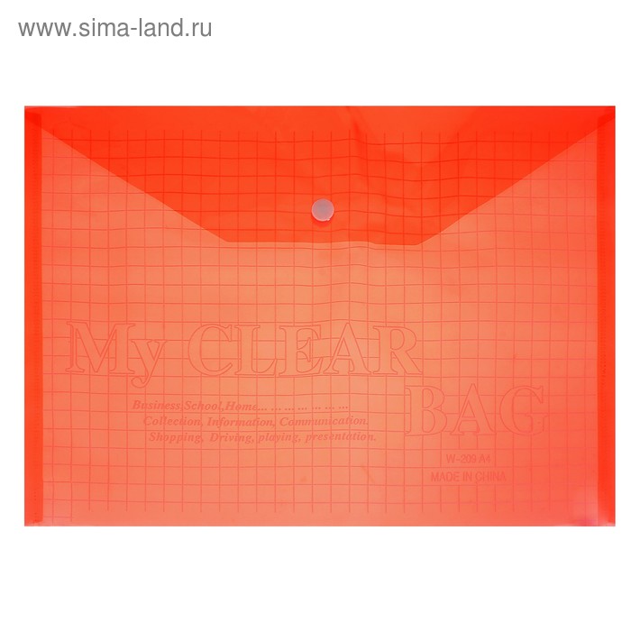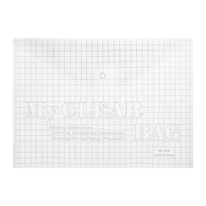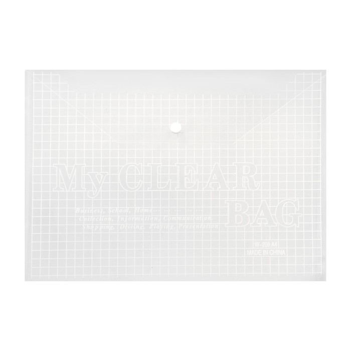 Папка-конверт на кнопке формат А4 100мкр Клетка прозрачная