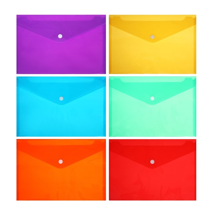 Набор из 6 штук, папка-конверт на кнопке, А5, 180 мкм, рифлёная, флуоресцентная, 6 цветов