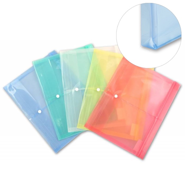 Набор папок-конвертов на кнопке 5 штук, А4, 150 мкм, Calligrata Standard, прозрачные, микс
