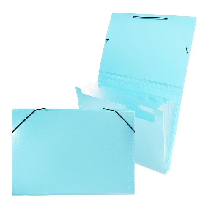 Папка картотека А4, Calligrata "Акварель", 13 отделений, пластиковая, 700 мкм, бирюзовая, резинка чёрная