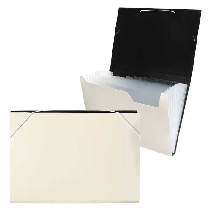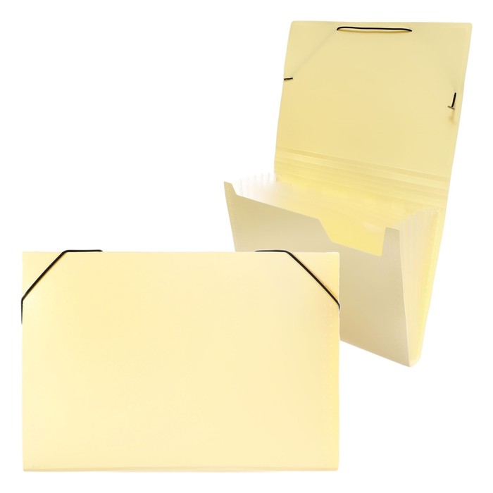 Папка картотека А4, Calligrata "Акварель", 13 отделений, пластиковая, 700 мкм, ванильная, резинка чёрная