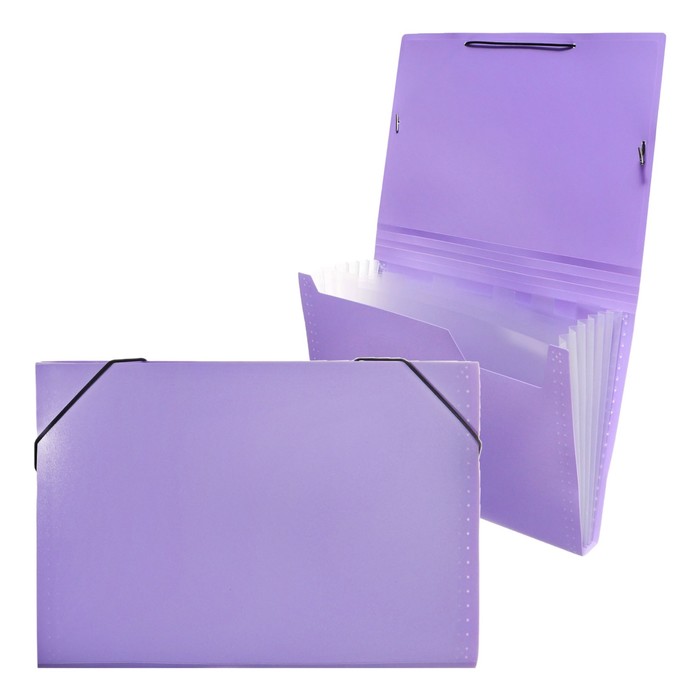 Папка картотека А4, Calligrata "Акварель", 13 отделений, пластиковая, 700 мкм, лавандовая, резинка чёрная