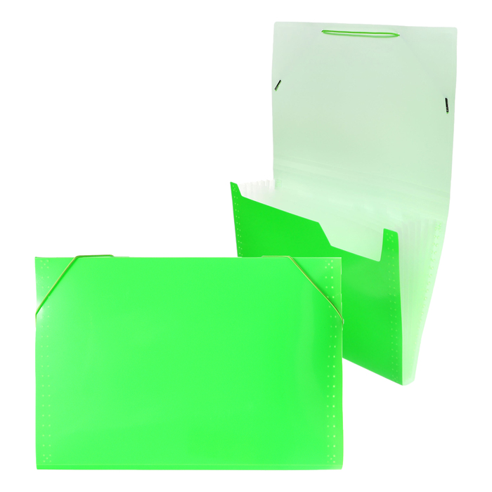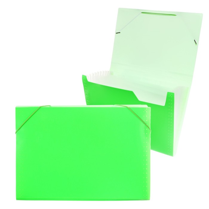 Папка картотека А4, Calligrata "Неон", 13 отделений, пластиковая, 700 мкм, салатовая, резинка в цвет