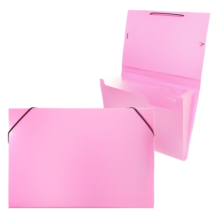 Папка картотека А4, Calligrata "Акварель", 13 отделений, пластиковая, 700 мкм, фламинго, резинка чёрная