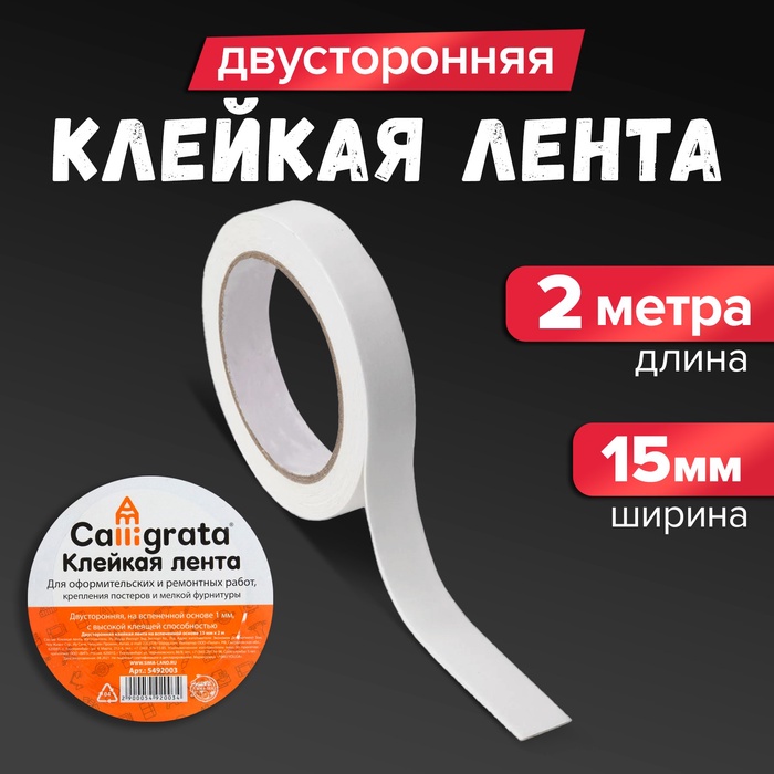 Клейкая лента двусторонняя, на вспенной основе 15 мм х 2 м