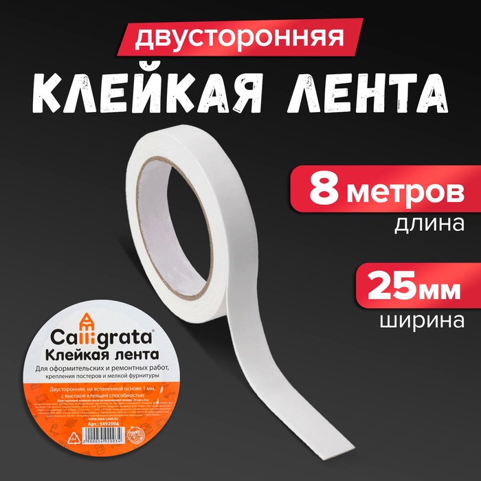 Клейкая лента двусторонняя, 25 мм х 5 м