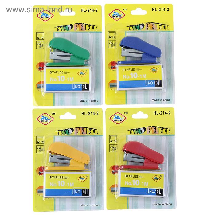 Степлер №10 до 15 листов со скобами, блистер, МИКС