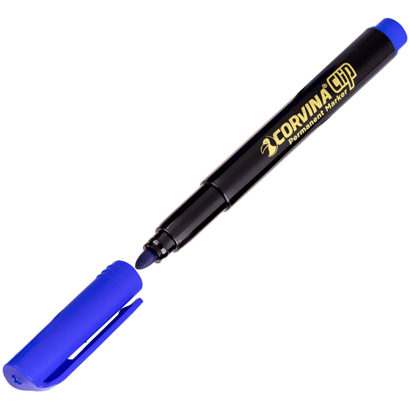 Маркер перманентный Corvina "Clip" синий, пулевидный, 2,5мм