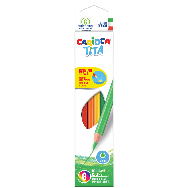 Карандаши цветные пластиковые Carioca "Tita", 06цв., заточен., картон, европодвес