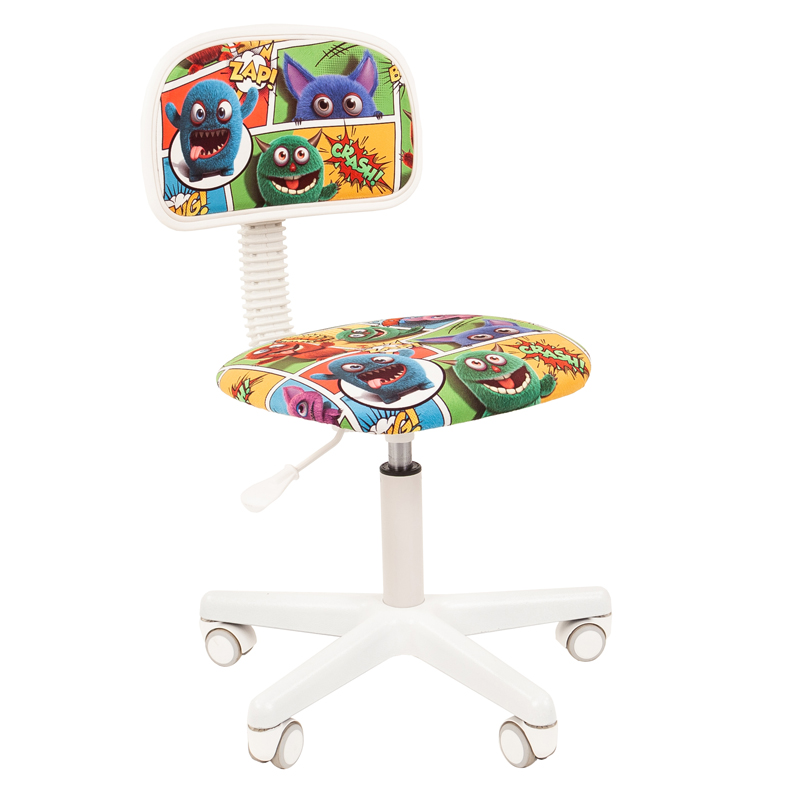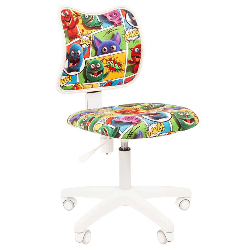 Кресло детское Chairman Kids 101, PL белый, ткань велюр, монстры, рег. по высоте, без подлокотников
