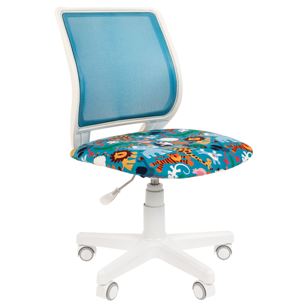 Кресло детское Chairman Kids 112, PL белый, сетка голубая/ткань велюр, зоопарк, пиастра, без подлокотников