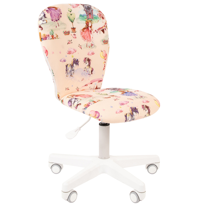 Кресло детское Chairman Kids 105, PL белый, ткань велюр, принцессы, регулировка по высоте, без подлокотников