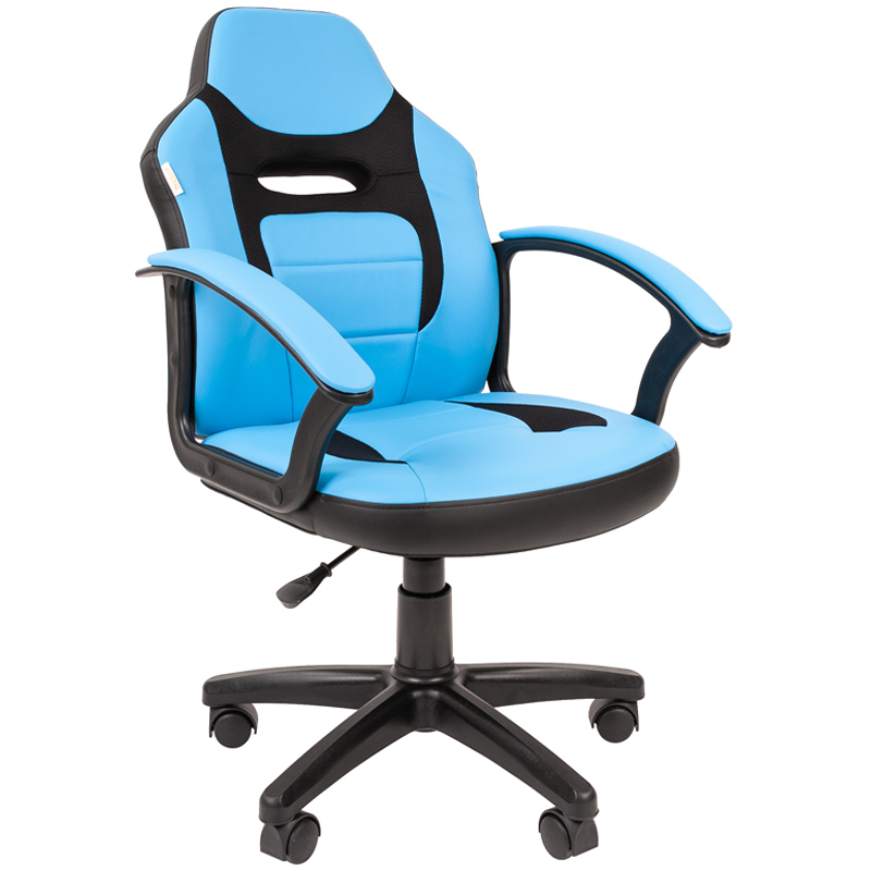 Кресло детское Chairman Kids 110, PL черный, экокожа голубая/ткань TW черная, регулир. по высоте