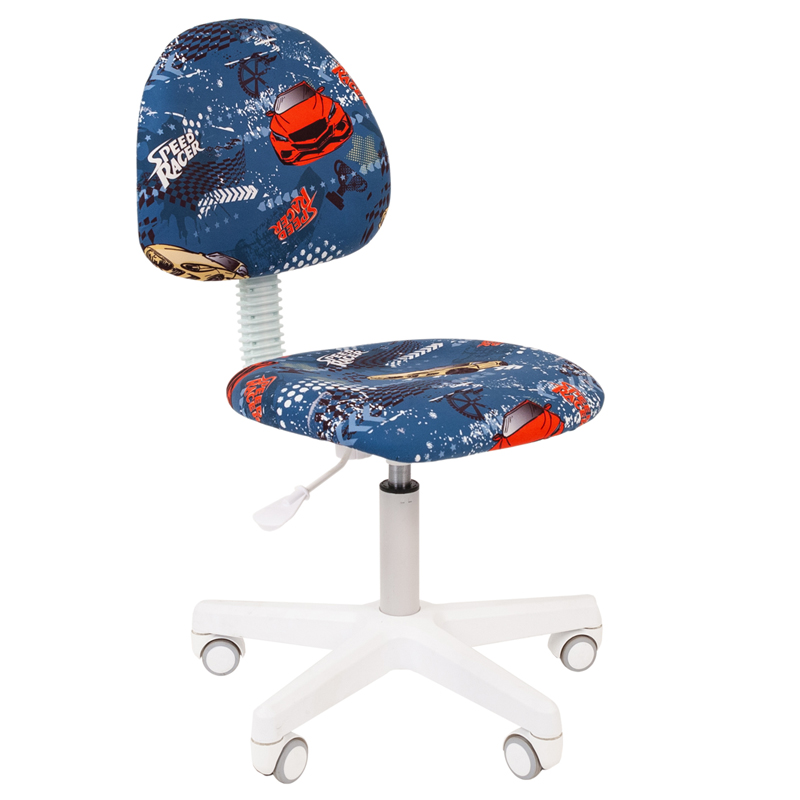Кресло детское Chairman Kids 104, PL белый, ткань велюр, машинки, мех.постоянной под.спины, без подл