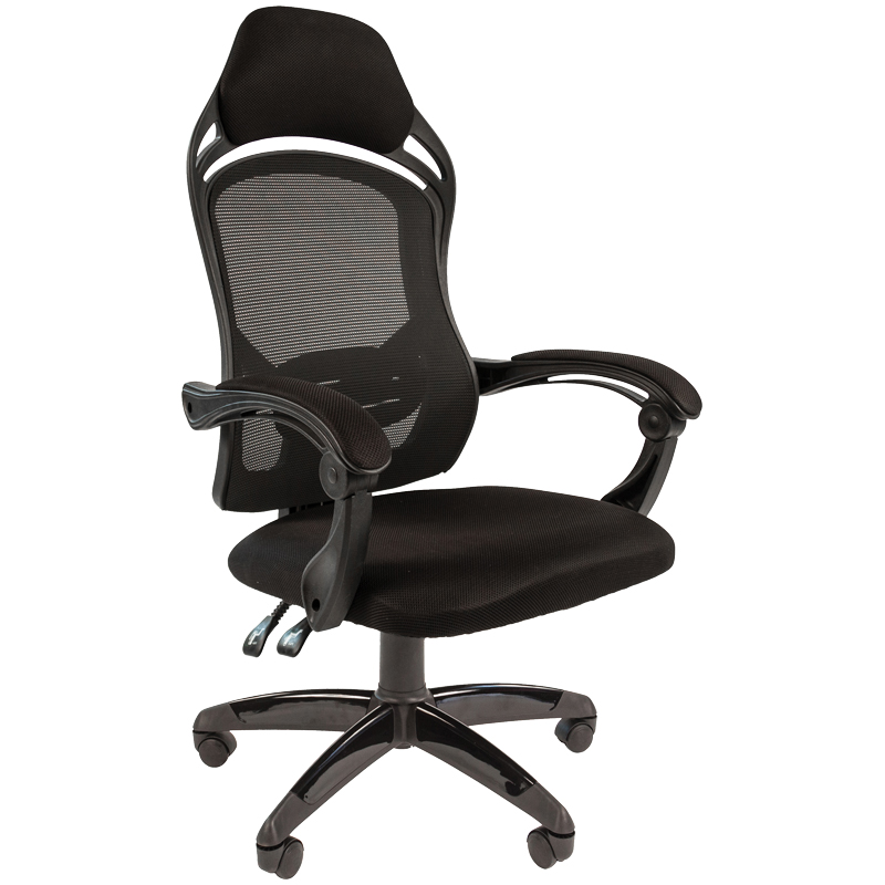 Кресло игровое Chairman "Game 12", ткань черная/ сетка черная, механизм качания