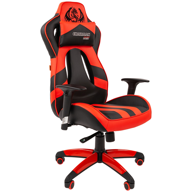 Кресло игровое Chairman "Game 25", экокожа премиум черная/красная, механизм синхро, регулир. подлокотники