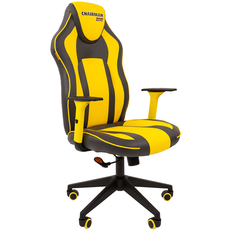 Кресло игровое Chairman "Game 23" PL, экокожа серая/желтая, механизм синхро, регулир.подлокотники