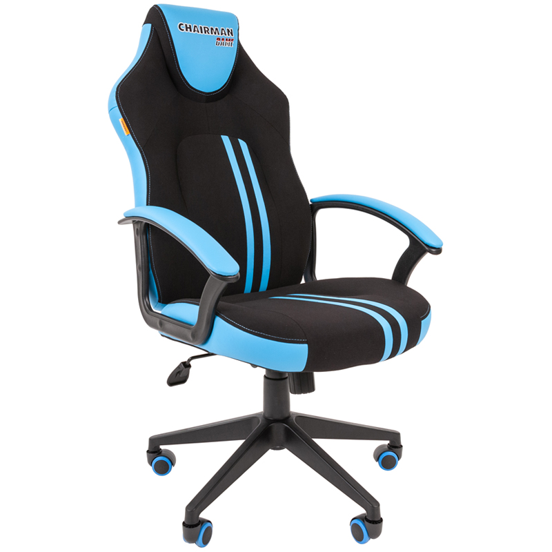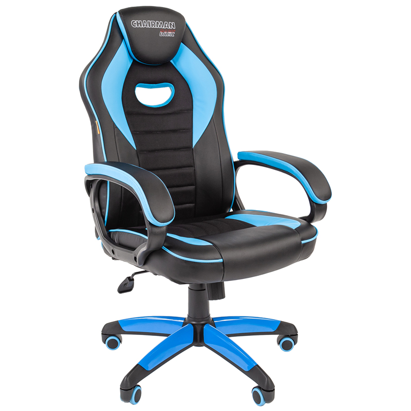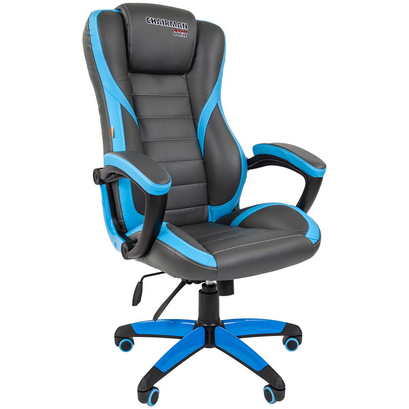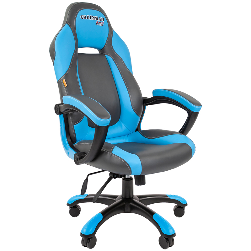 Кресло игровое Chairman "Game 15", экокожа черная/голубая, механизм качания