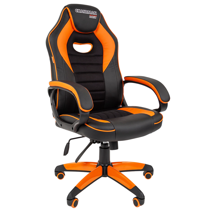 Кресло игровое Chairman "Game 16", экокожа черная/оранжевая, ткань TW черная, механизм качания