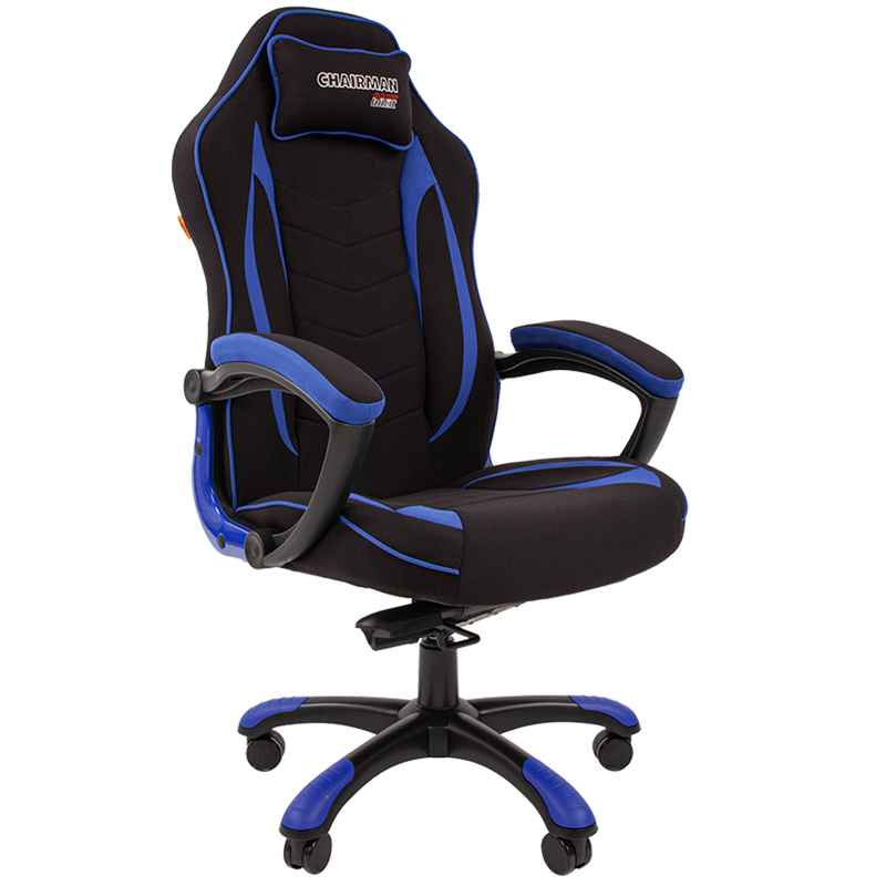 Кресло игровое Chairman "Game 28", ткань черная/синяя, механизм качания