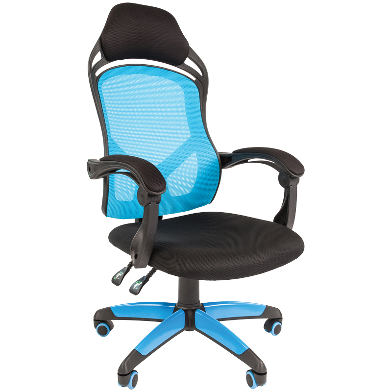 Кресло игровое Chairman "Game 12", ткань черная/ сетка голубая, механизм качания (ПОД ЗАКАЗ)