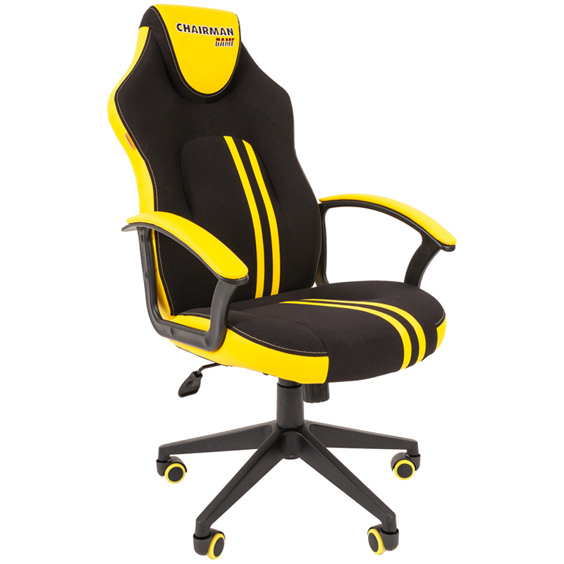 Кресло компьютерное СН GAME 17, ткань TW/экокожа, черное/желтое, 7028515