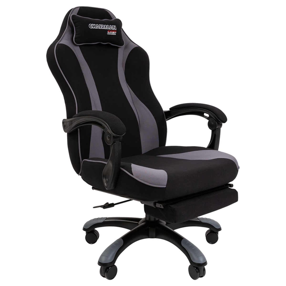 Кресло игровое Chairman "Game 35", PL, ткань черная/серая, синхромеханизм, подставка для ног