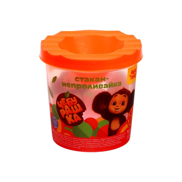 Стакан-непроливайка Мульти-Пульти "Чебурашка" (полный 250 мл, до уровня 50 мл), с рисунком