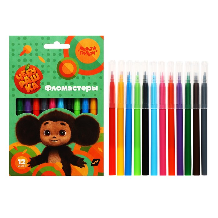 Фломастеры 12 цветов Мульти-Пульти "Чебурашка", смываемые, картонная упаковка, европодвес