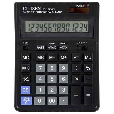Калькулятор настольный CITIZEN SDC-554S (199x153 мм), 14 разрядов, двойное питание