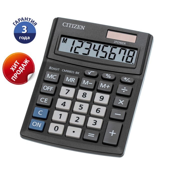Калькулятор настольный CITIZEN BUSINESS LINE CMB801BK, МАЛЫЙ (137x102 мм), 8 разрядов, двойное питание