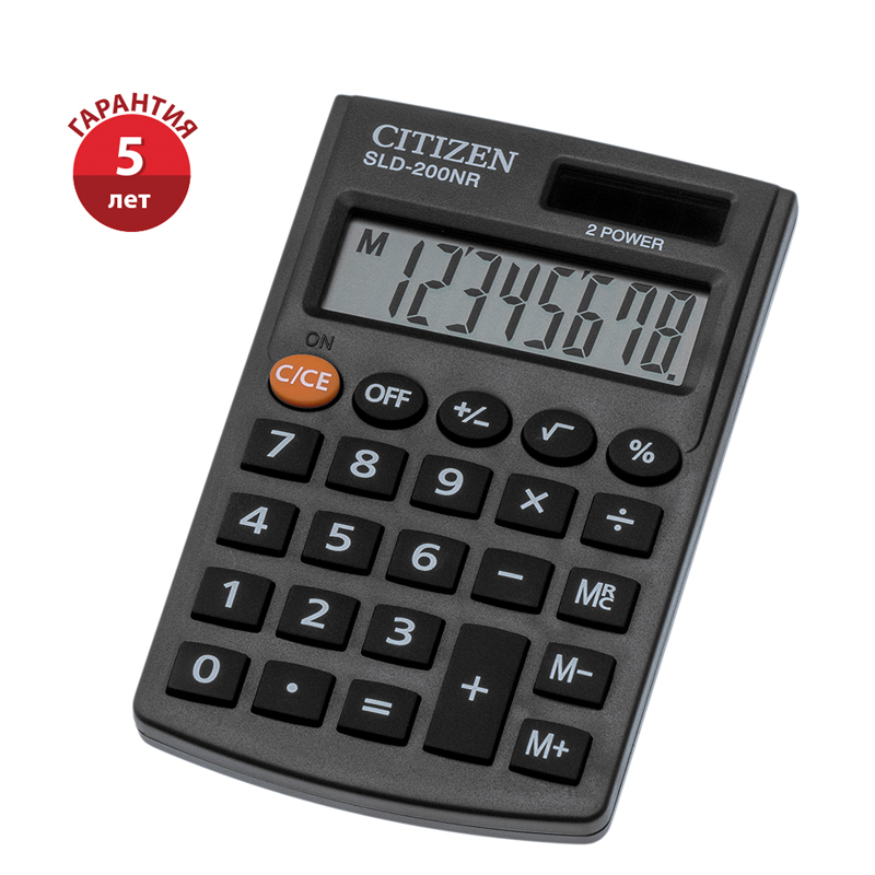 Калькулятор карманный Citizen SLD-200NR, 8 разрядов, двойное питание, 62*98*10мм, черный