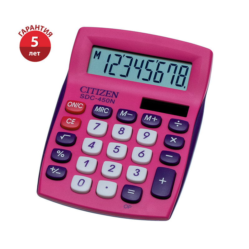 Калькулятор настольный Citizen SDC-450NPKCFS, 8 разрядов, двойное питание, 87*120*22мм, розовый