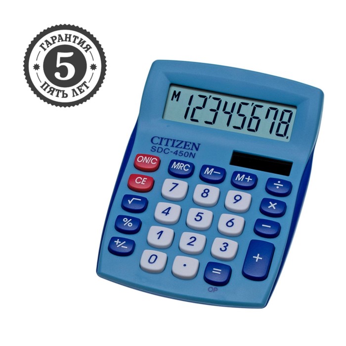 Калькулятор настольный Citizen "SDC-450NBLCFS", 8-разрядный, 120 х 87 х 22 мм, двойное питание, синий