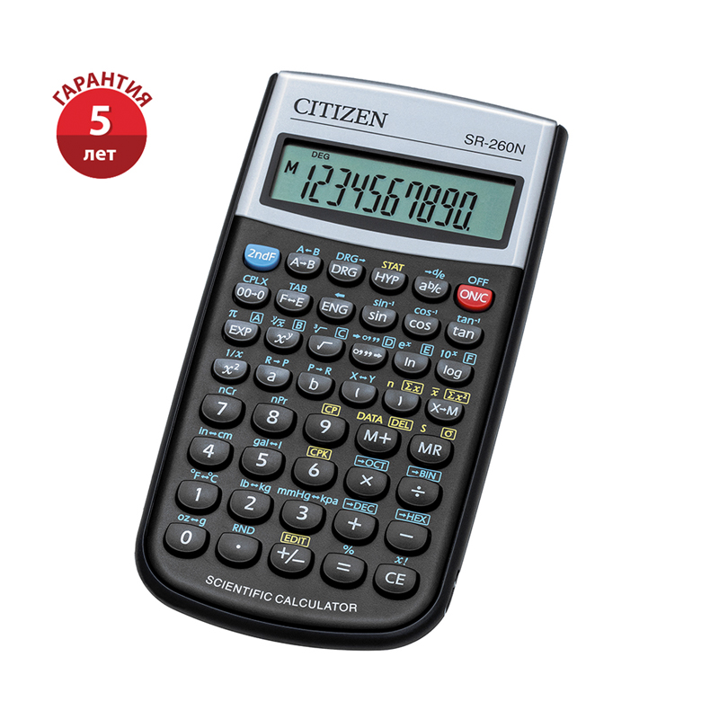 Калькулятор научный Citizen SR-260N, 10+2 разрядов, 165 функций, питание от батарейки, 80*154*14мм, черный
