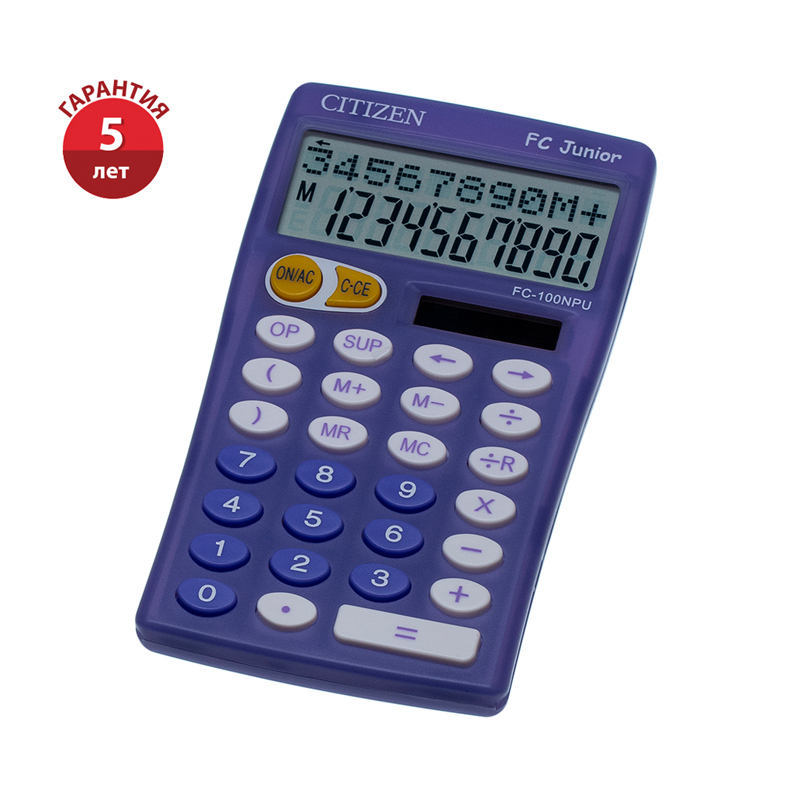 Калькулятор карманный Citizen FC-100NPUCFS, 10 разрядов, двойное питание, 76*129*17мм, фиолетовый