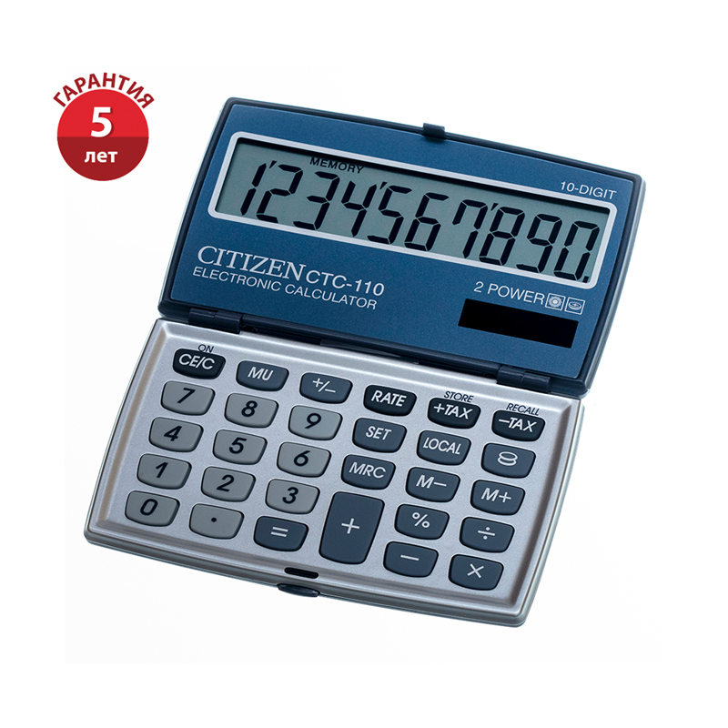 Калькулятор карманный Citizen CTC-110WB, 10 разрядов, двойное питание, 63*106*14мм, серебристый