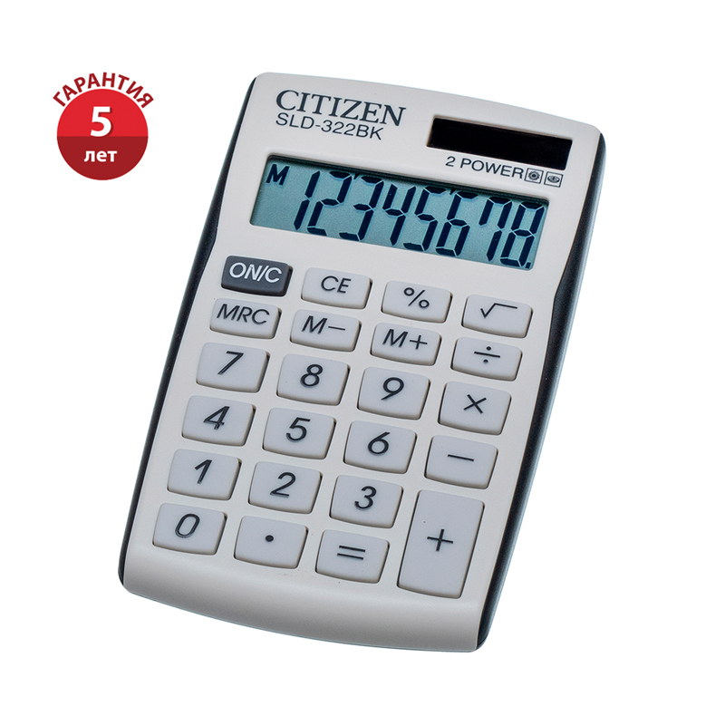 Калькулятор карманный Citizen SLD-322BK, 8 разрядов, двойное питание, 64*105*9мм, белый/черный