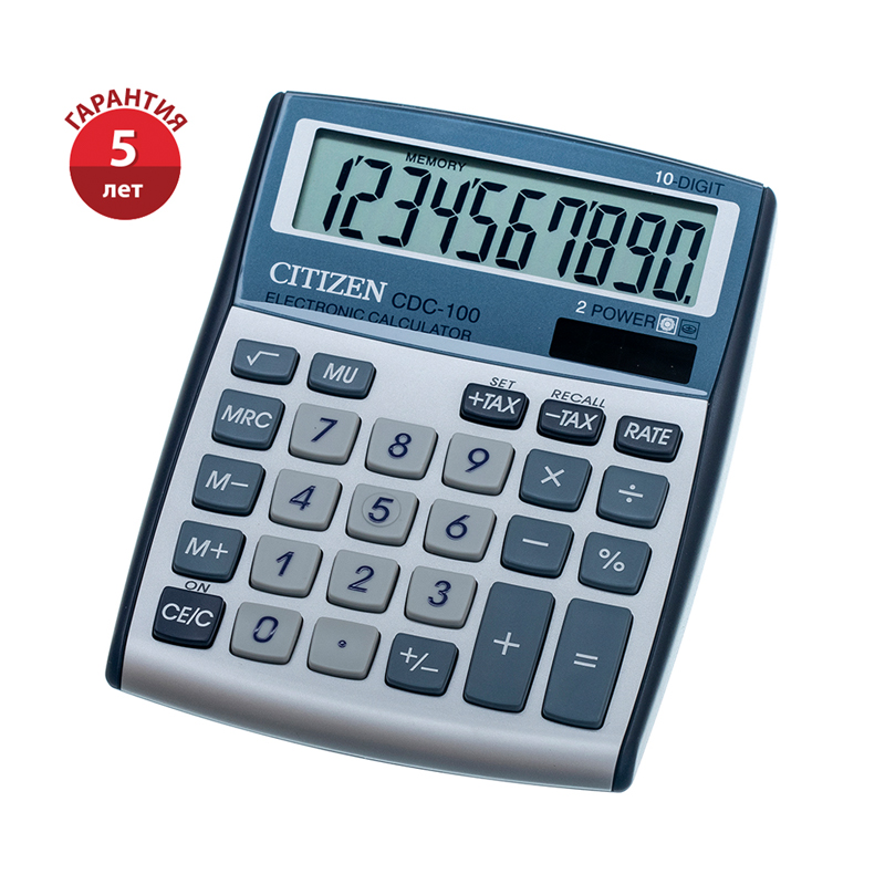 Калькулятор настольный Citizen CDC-100, 10 разрядов, двойное питание, 109*135*25мм, серебристый