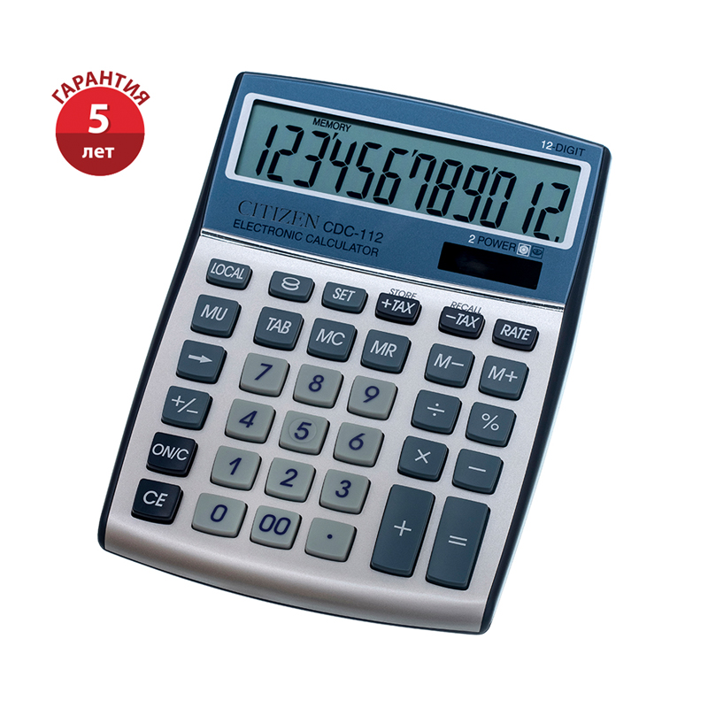 Калькулятор настольный Citizen CDC-112, 12 разрядов, двойное питание, 130*175*33мм, серебристый