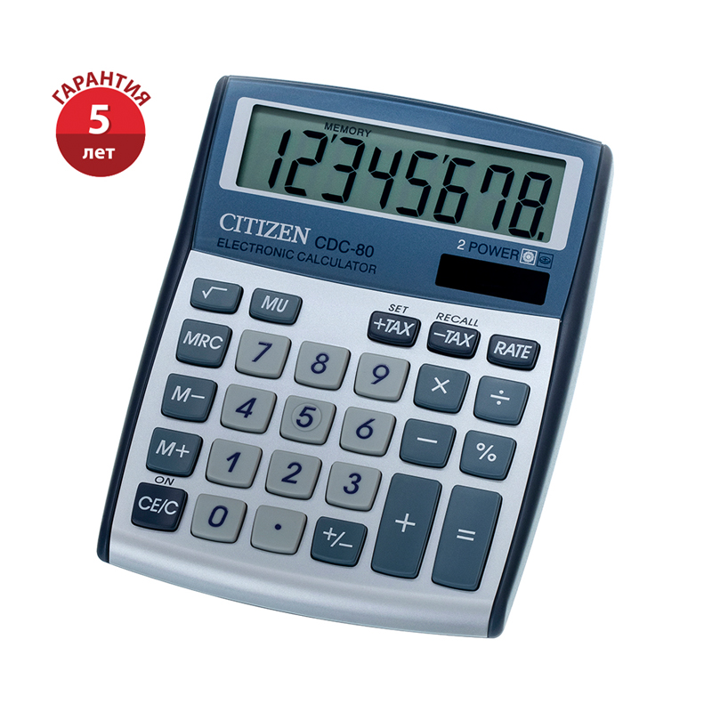 Калькулятор настольный Citizen CDC-80WB, 8 разрядов, двойное питание, 109*135*25мм, серебристый